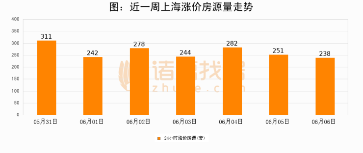 根据诸葛找房数据显示,上海24小时涨价房源量为238套,较06月05日减少13套,环比下降5.2%。与此同时,涨价房源占比小幅回落,对于购房者来说是一个入市窗口期,购房者可抓住时机入市。