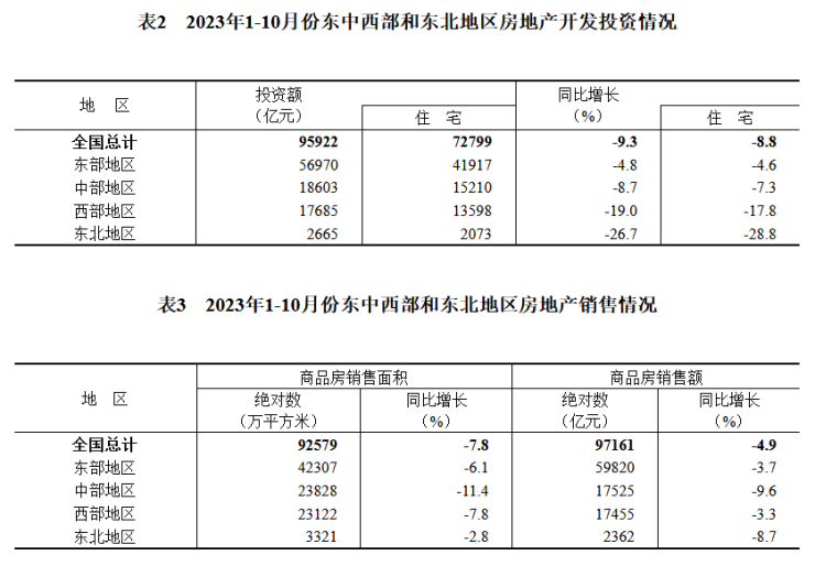 国家统计局11月15日公布1—10月份全国房地产市场基本情况。