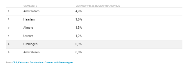 如此疯狂的房价不止在首都显现,在荷兰以下六大城市,都出现了房屋成交价比要价高的普遍现象