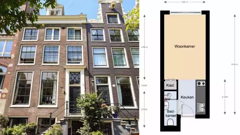 据悉,这间阿姆斯特丹的“豪宅”位于Nicolaas Witsenstraat上,在运河旁。这个60平方米的房子包括3个房价、一个私人电梯和豪华的全天然大理石地板,有一个私人阳台,甚至还有一个和其他房客共享的庭院。