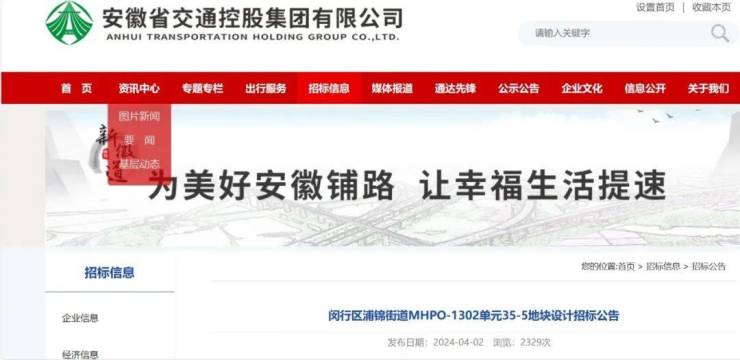 就在下周首批次第2轮的土拍即将开启之际,4月2日,安徽省交通控股集团有限公司在官网发布了闵行区浦锦街道MHPO-1302单元35-5地块的设计招标公告。