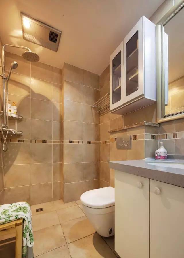 如果墙体无法改动,达不到开窗的条件。在选择卫生间瓷砖的时,选择些淡色调,像白色瓷砖就是很不错的选择。灯光开启后,白色瓷砖在灯光的印照下整体空间会显得更加明亮。