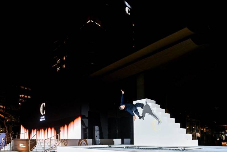 (法国当代表演艺术家 Yoann Bourgeois 特别为此次发布会量身编排舞蹈,其舞团首次亮相上海,以舞姿引领观众进入全新悬浮艺术的世界)