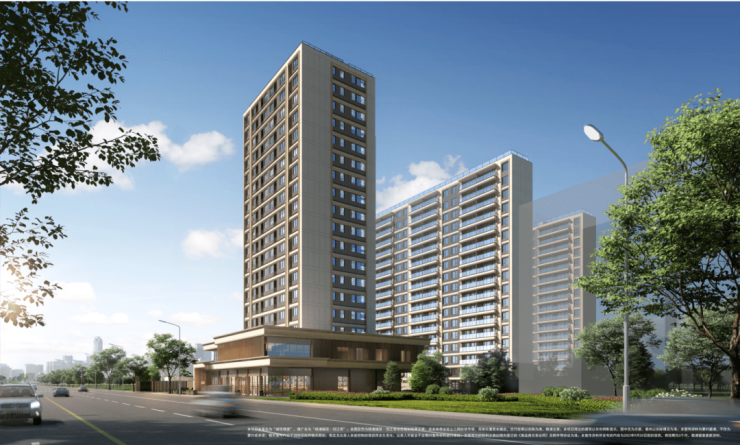 「杨浦城投·悦江湾」采用了现代典雅的建筑风格,外立面主要运用暖米白色、香槟金色与咖色,建筑整体端庄稳重的同时又展现出美感。