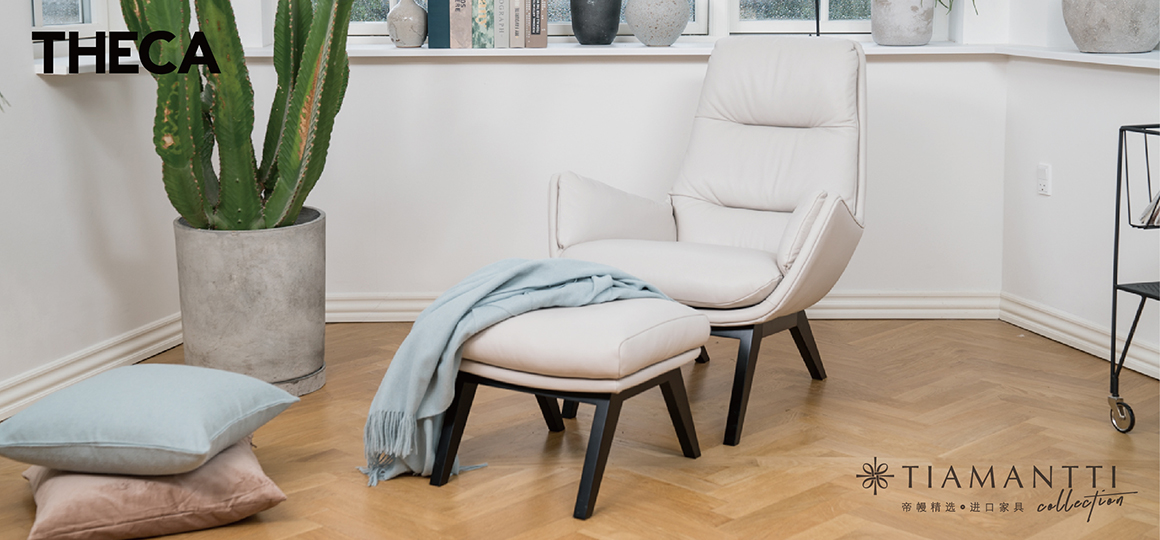 一向以舒适坐感闻名的Theca休息椅,也是十分舒适的体验,Theca休息椅采用气撑调节杆和可调节头枕,无论是阅读、追剧还是下午小憩都无比舒适,色彩应用也十分考究,沉静的奶白色磨砂牛皮手感细腻,端庄大气。