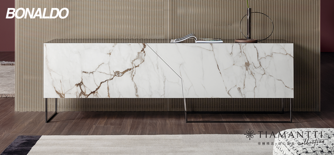 除此之外,Gallotti&Radice也将玻璃工艺发挥到优质,将玄关柜的玻璃台面打造出绒面效果,低调奢华。抽屉内衬麂皮,纤薄的底座轻盈不占空间,还可以当做书桌、化妆桌使用,多功能性一应俱全。