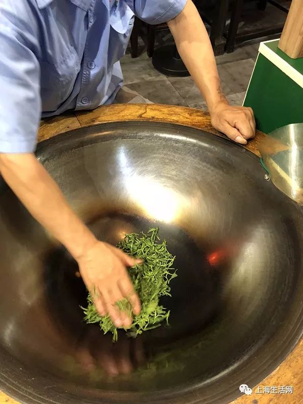 现场炒茶是湖心亭特色之一,龙井茶的色香味一应俱全。