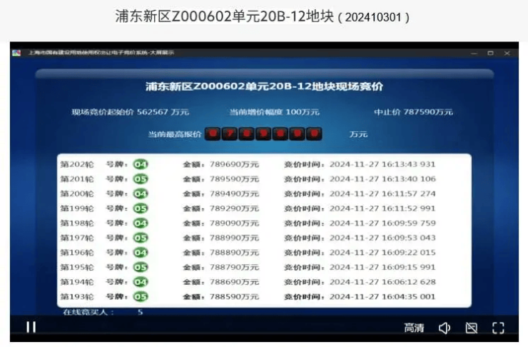 全程经过202轮报价,地块最终以78.969亿元成交,堪称今年上海的总价地王,溢价率达到40.37%,成交楼面价74426元/㎡。