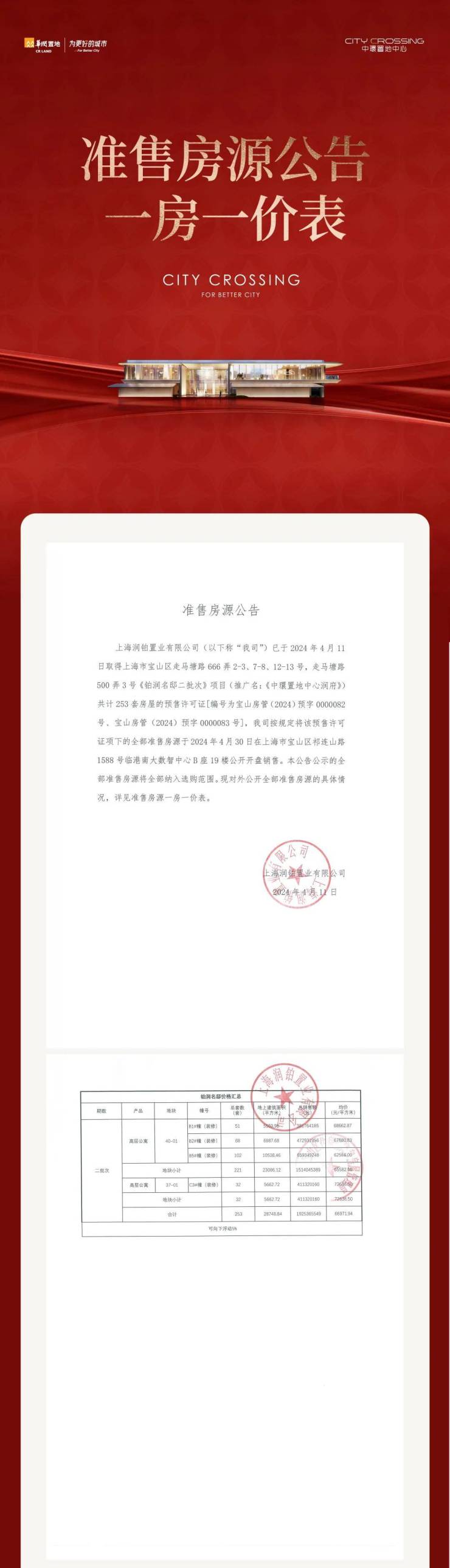 项目本次首开推出建面约103-177㎡3-4房,共计253套房源,过会均价66972元/㎡