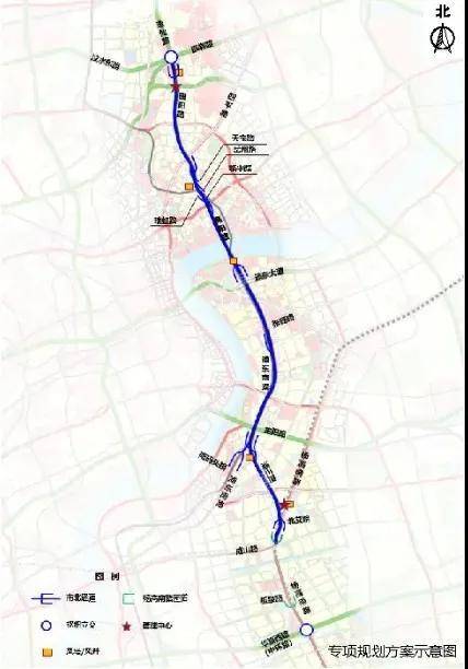 拟采用地下道路,北起大柏树立交,沿曲阳路-临平路-高阳路-浦东南路-浦三路-杨高南路走行,至成山路,接入杨高南路,并规划预留进一步向南延伸条件。