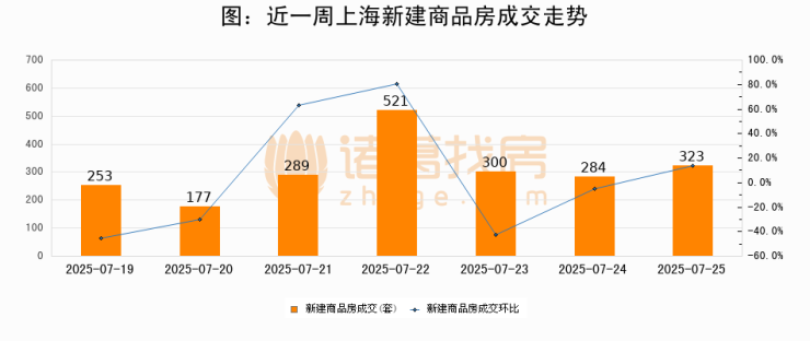 【上海成交日报】07月25日新房成交323套、二手房588套;涨价房源87套