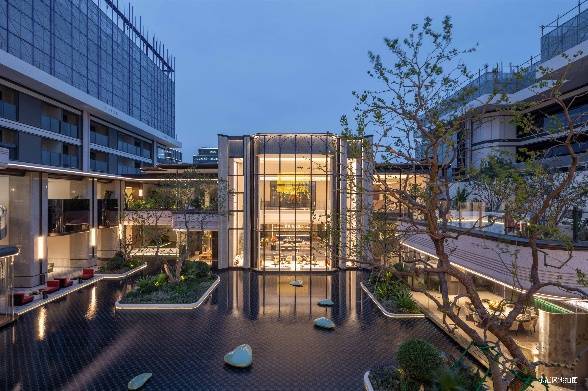 约1800㎡下沉式会所,依托天然地势打造的下沉式庭院,将灵动水系、葱郁绿植与建筑肌理自然交织,勾勒出一幅人与自然和谐共生的诗意画卷。不同于传统会所的单一功能定位,「峡谷森境」以“全龄层多元生活场景”为核心,精心规划了一系列高品质功能空间: