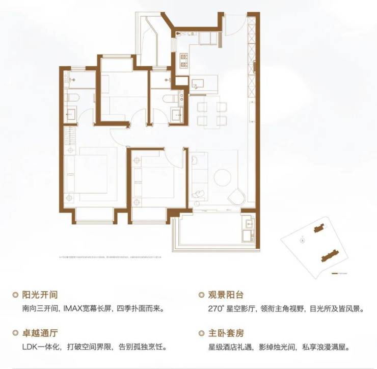 再重点提一下这个270°景观大阳台。吹着徐徐晚风,无论是眺望璀璨的星空,还是细细打量精致的社区,都能驱散一天的疲惫。