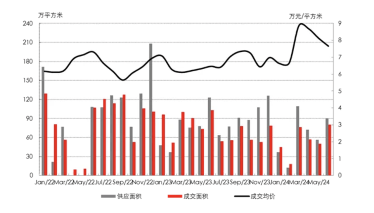 上半年供应面积达到380.87万平方米,和去年同期相比减少17.08%。从节奏来看,年初受淡季影响,供应处于低位,随着小阳春到来,供应回升到100万平方米以上,此后出现快速回落,6月在半年业绩的推动下,供应回升,但也仅仅是90万平方米的当量。虽然每月推出一批集中供应楼盘名单,但从总量来看明显不及以往,第七批集中供应楼盘甚至跌倒个位数,供应房源仅1503套,为有集中供应制度以来最低。