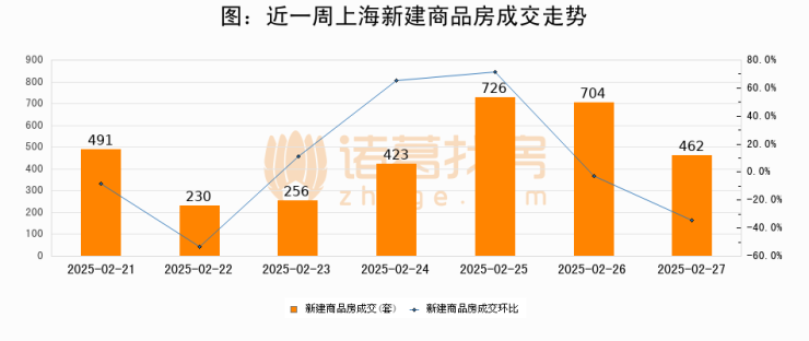【上海成交日报】02月27日新房成交462套、二手房862套;涨价房源3721套