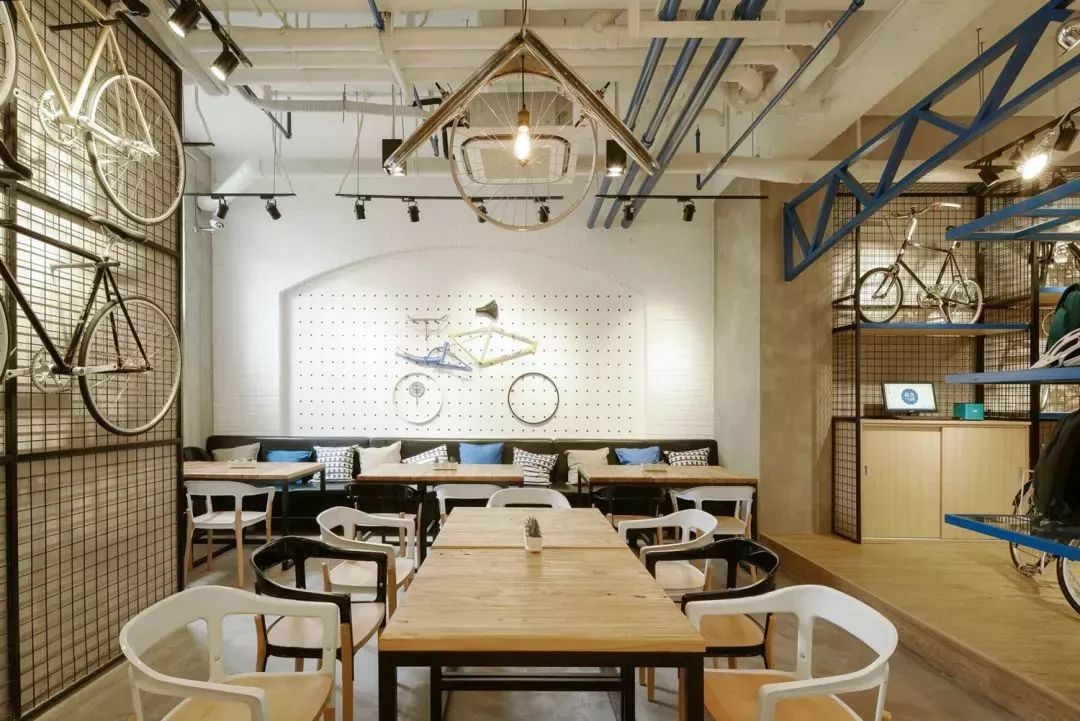 在进行空间设计时,注意不同功能分区整体环境与永久自行车元素的融合。