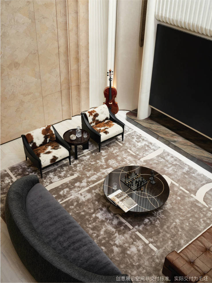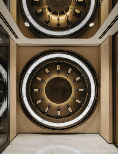 负一层会客厅,一处为欢聚与品味定制的私享社交场域,浅酌慢饮间,时光悠然流转。大沙发以浑圆饱满的雕塑形态落座,搭配质感醇厚的牛皮单椅,共叙从容与舒适。三组酒柜巧妙融合,金库门造型藏酒装置配有旋转底座,尽显主人品味与热爱。每一寸空间皆是艺术品,每一道光影皆为叙事者。