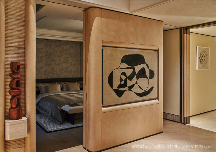 上海静安里建筑面积约260㎡「风格回响」样板间,石材的温润、线条的克制、光影的流动,在现代语境里重写风貌大宅的表达。客厅端景矗立着法国艺术大师Astuguevieille的雕塑作品,为空间注入温润感性的艺术温度,亦成为一场柔软与力量并存的美学对话。