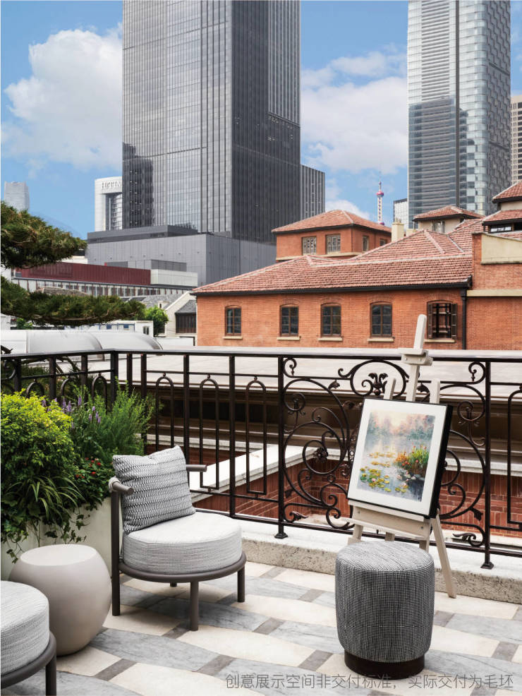 站在建筑面积约260㎡「风格回响」藏品露台,抬眼即与东方明珠尖塔遥相对望,尽揽上海城市地标的天际线,感受现代上海的时代脉搏;低眉便见百年唐宅的隽永肌理,红砖檐角沉淀着海派文脉的岁月温度。
