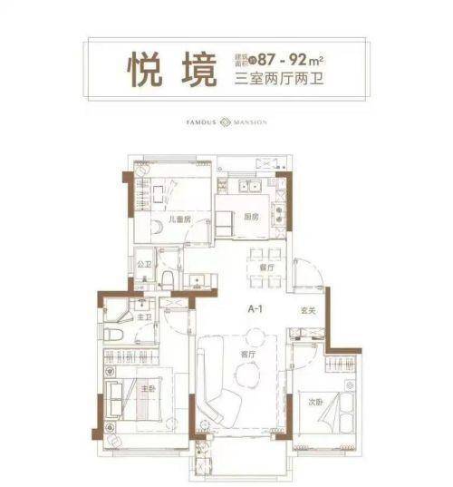 先来看看建面约87-92㎡三房,做到了双卫布局,能完美实现市面上“百平3房”的布局,紧凑户型+超强功能性,让买房人的钱都用在刀刃上!