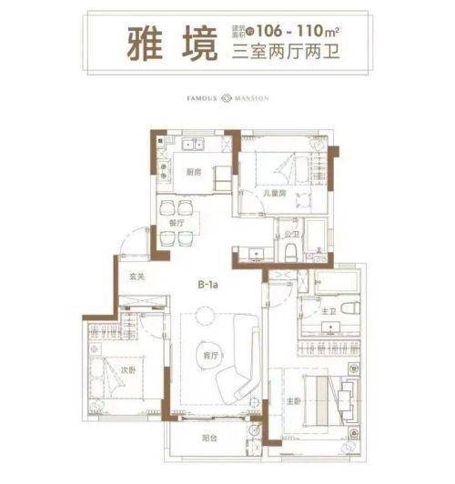 此外,项目还有建面约106-110㎡三房可供选择,户型图如下↓