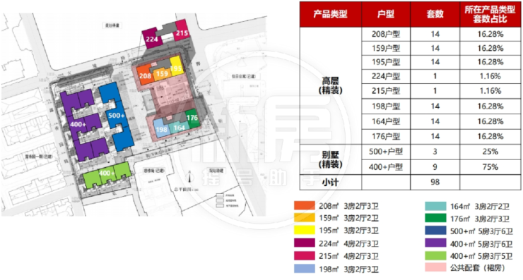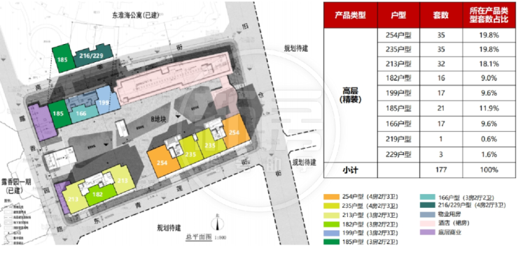 露香园二期的可售住宅部分分A、B、C、D四个大地块,13.3万㎡的住宅总面积中,10.79万㎡为高层住宅,2.44万㎡为低密度特色住宅(别墅),5.22万㎡的商业。