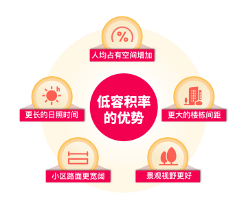 衡量住宅品质的一项重要指标就是容积率。要知道,每降低0.1的容积率,带来的改变将超乎想象。可能是:日照时间增加约15分钟,被噪音干扰到的机会减少约20%,小区新增约100棵树,活动区域扩大约10m²……