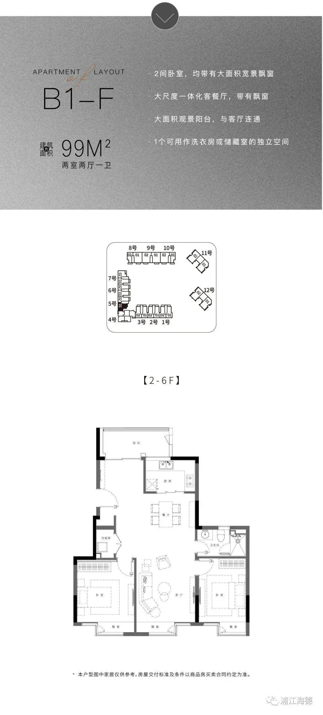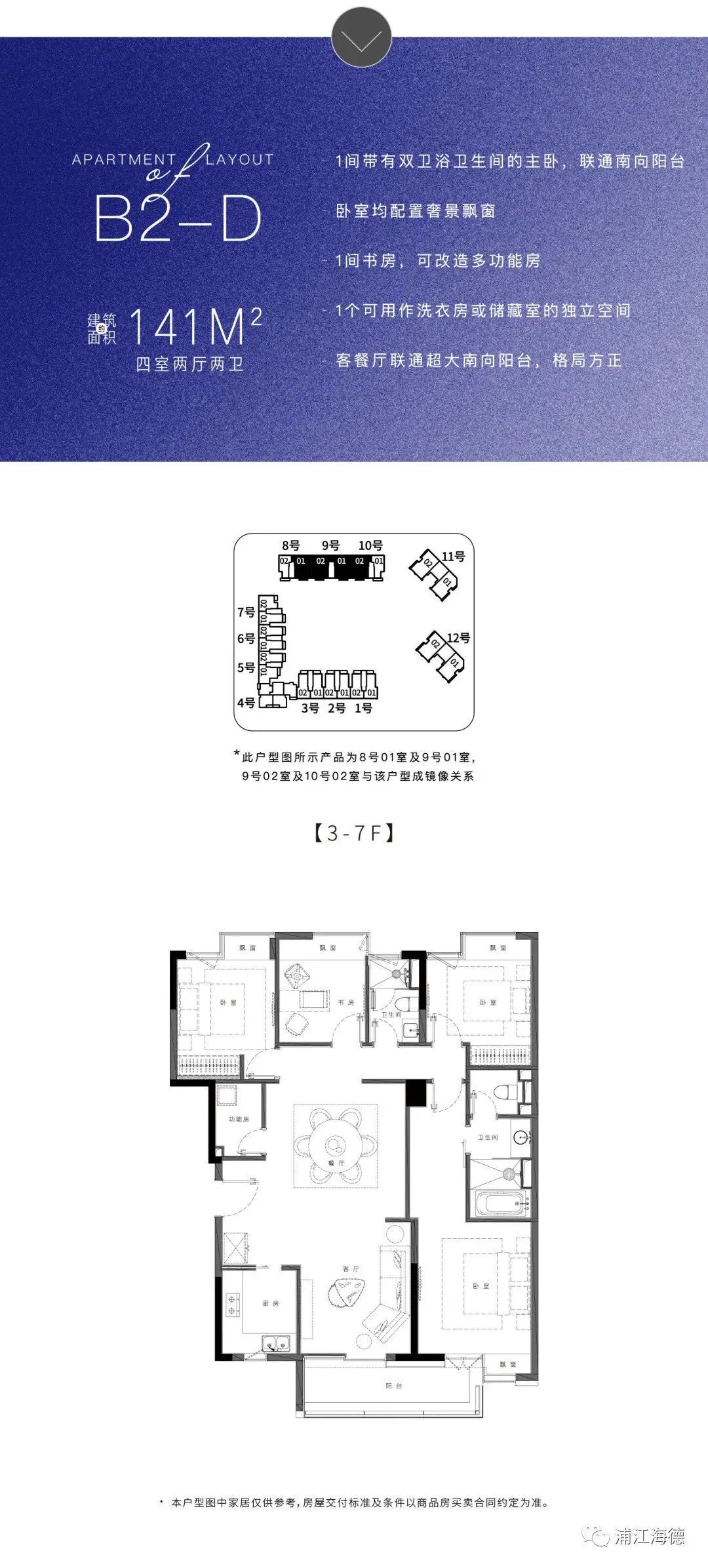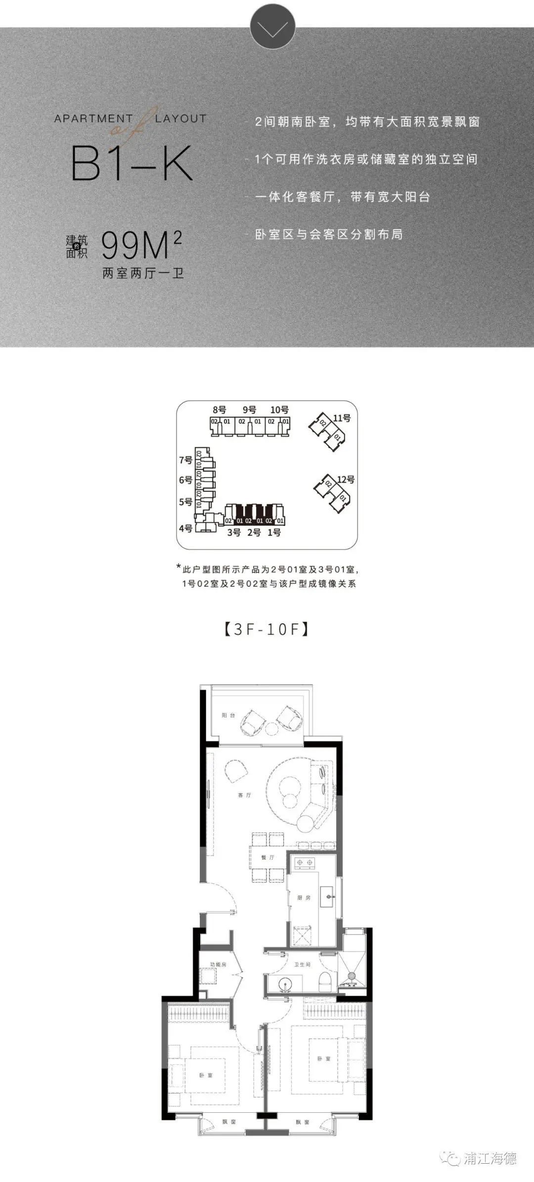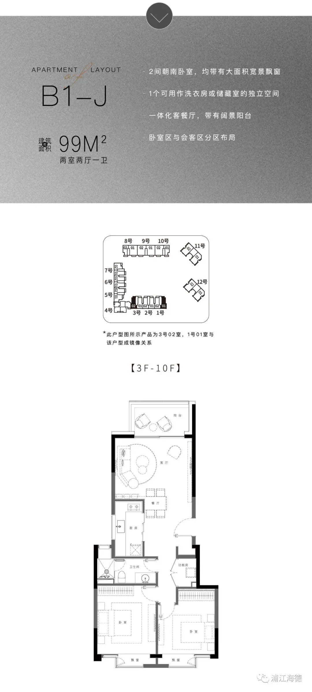从户型来看,本次浦江海德主力户型建面为约77-99㎡2房、约141㎡3+1房、约174-180㎡3房,户型多达10种,目标客群直指中产和高端改善购房者。