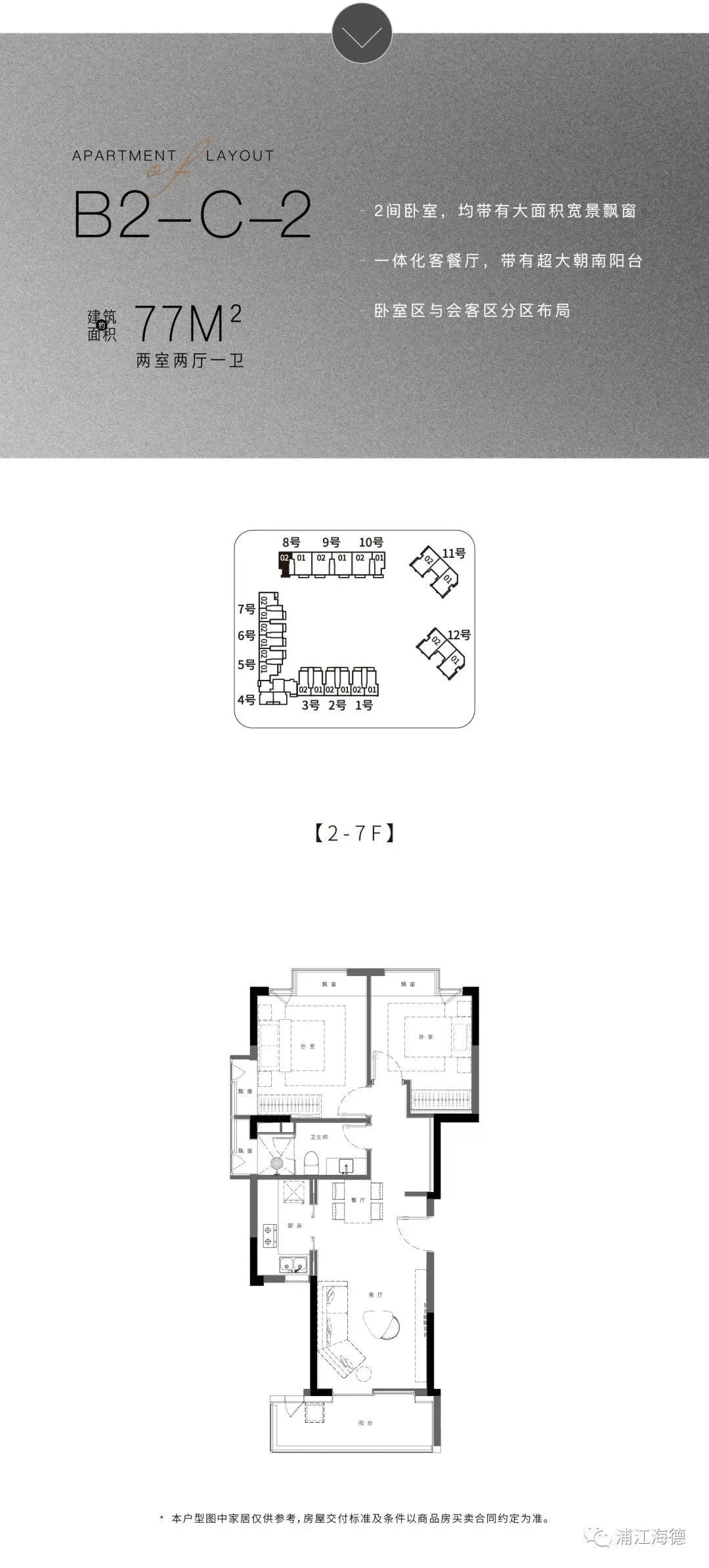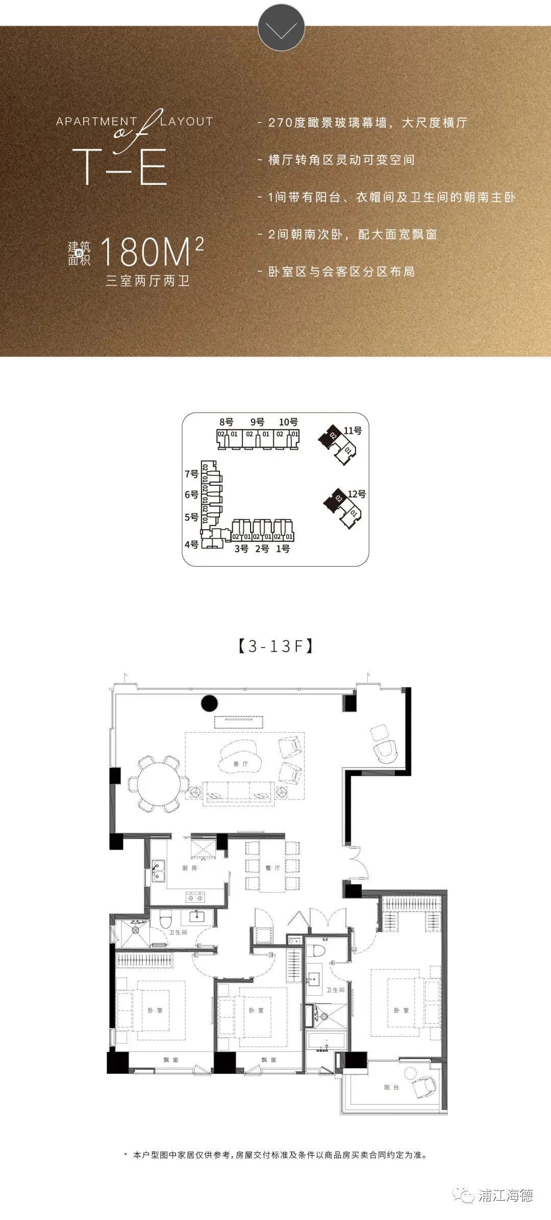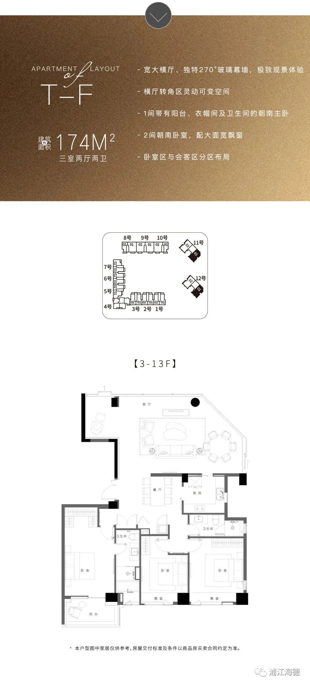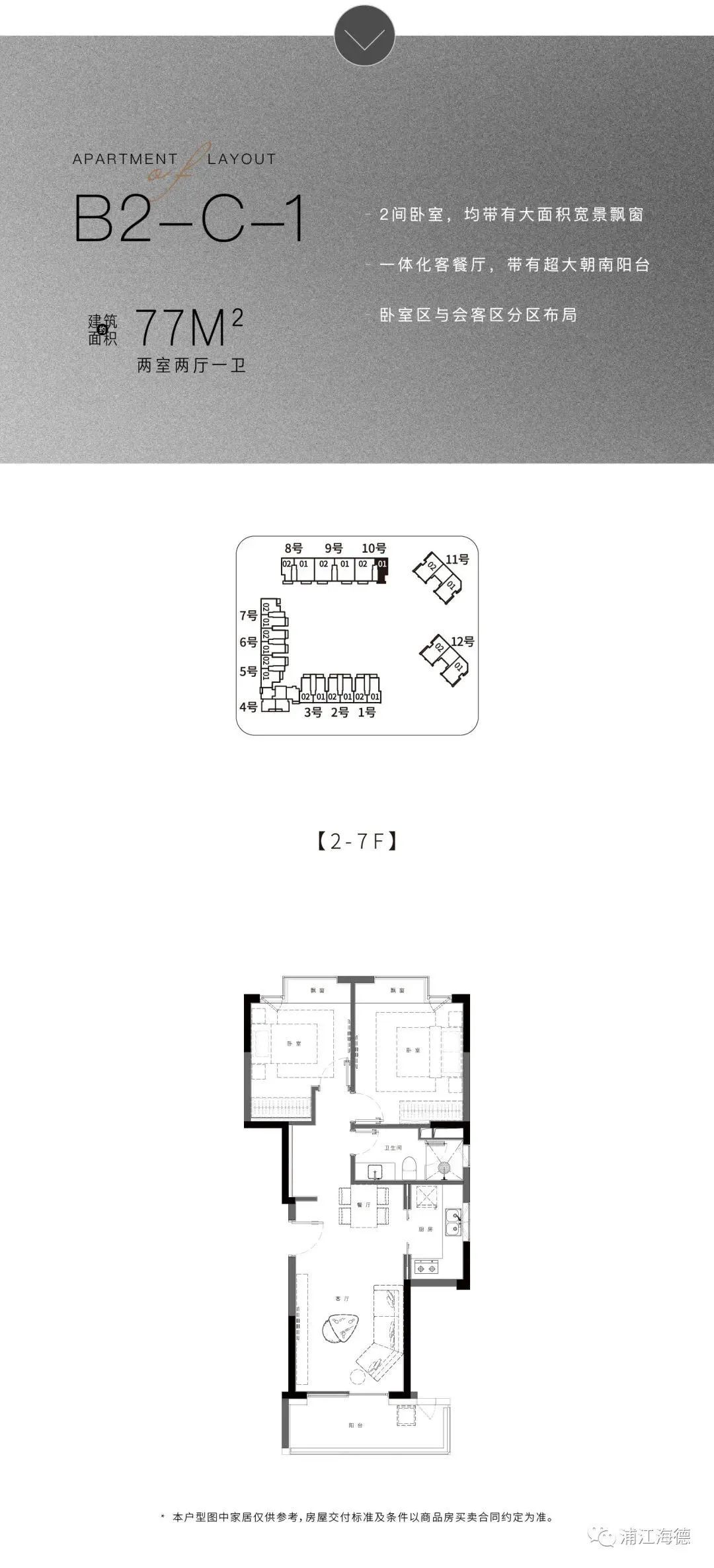 从户型来看,本次浦江海德主力户型建面为约77-99㎡2房、约141㎡3+1房、约174-180㎡3房,户型多达10种,目标客群直指中产和高端改善购房者。