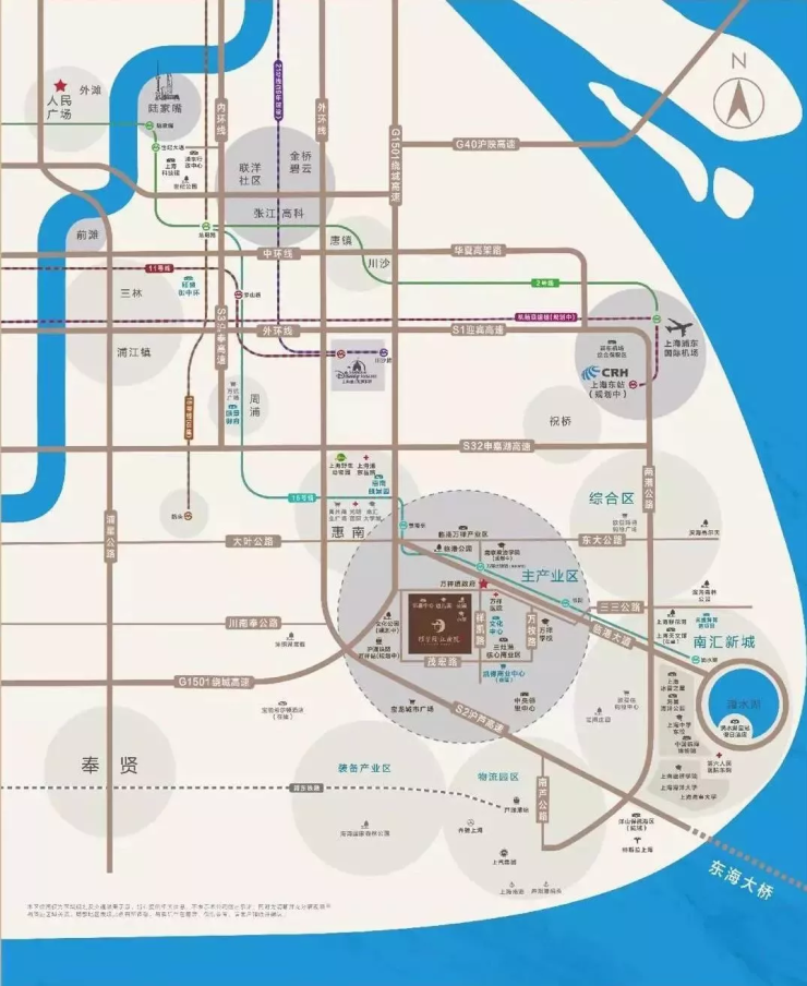 该项目位于临港的万祥镇,属于临港自贸区新片区范围。项目距离16号线书院站约4.5公里,自驾10分钟左右,向东2站可达滴水湖,向西10站可达龙阳路。此外,项目还毗邻G1501高速,可连接S2、S32,前往市区单程约1小时。