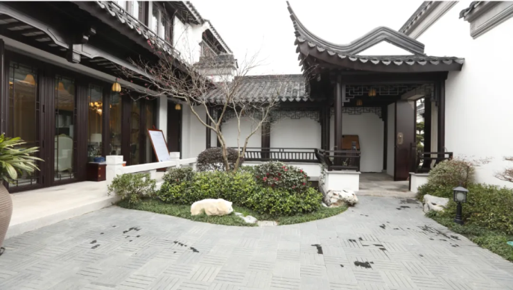 颐景园江南院为传统的中式江南园林社区,将经典的“亭台楼阁,轩榭廊坊”融入园林中,集合苏式园林的“透景、漏景、障景”等造园手法,以紫薇、五针松、乌柏、海棠、梅花等几十种绿植与坊间巷道相结合,还原一个纯粹的江南别院。