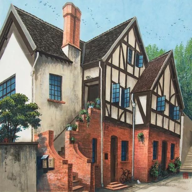 艺术家李守白先生2017年的新作《老洋房》,描绘的正是上海五原路上一幢英式小别墅,不同于以往的作品,艺术家此次单用一整幢建筑作为主体,明快写实。