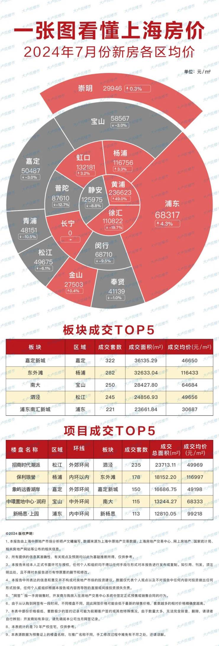 一张图看懂2024年7月份上海各区新房均价