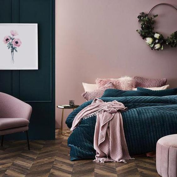 粉色的甜美,搭配墨绿色的沉稳,缔造出满满的高雅质感,使得空间充满文艺端庄的浪漫气息。