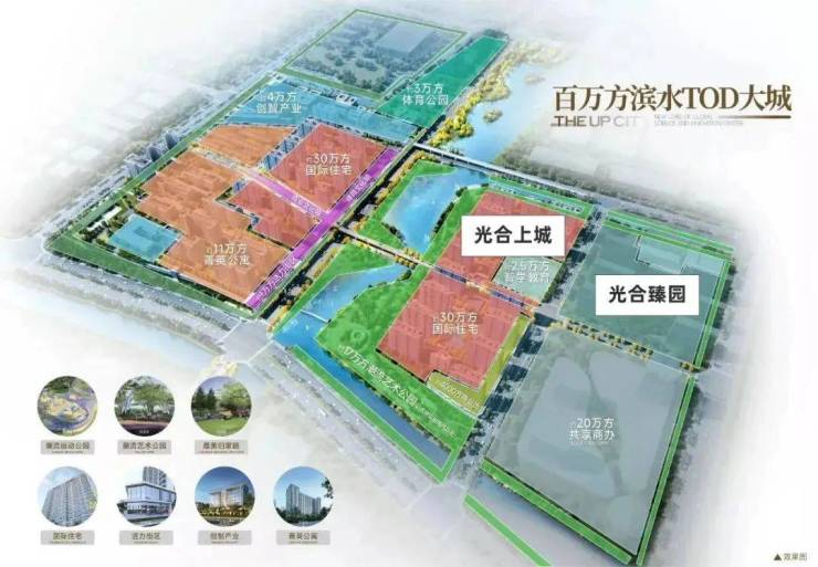 保利联发·光合臻园所在的区域规划了集住宅、商业、办公、文化、教育、公寓、生态7大复合业态于一体的百万方滨水TOD大城,其超大的体量在主城区史无前例。