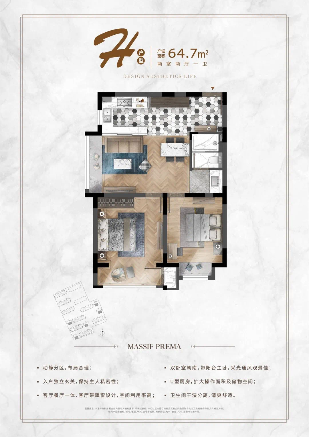 建面约57-70㎡ 2房2厅1卫