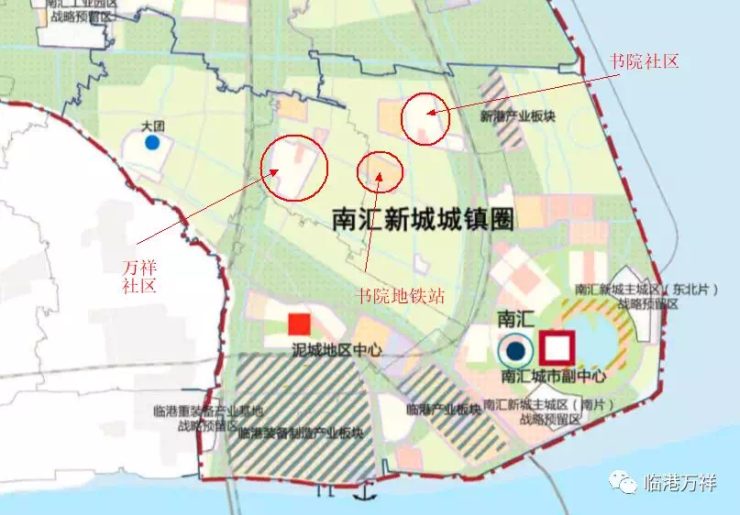 2、南汇新城城镇圈:包含了临港四镇(南汇新城镇、万祥镇、泥城镇、书院镇)和大团镇,加强人口集聚,着力导入市级公共服务设施,提升产业科技创新能力,培育区域性就业和服务中心,构建城镇圈快速路系统。