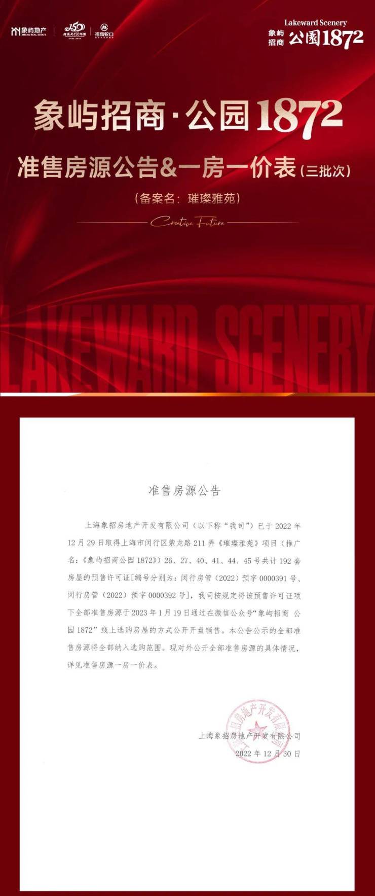 首日即约175组认购!【象屿招商公园1872】三批次精装3房仅约433万起!