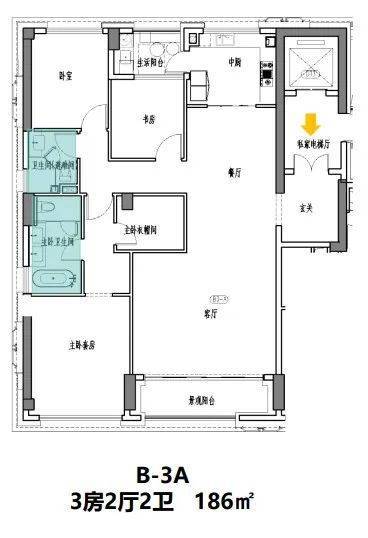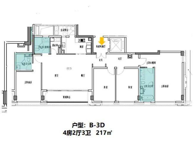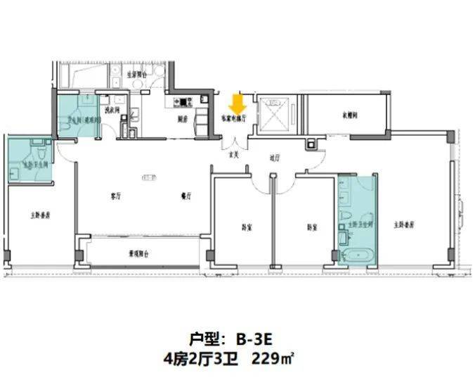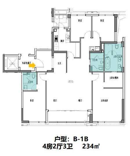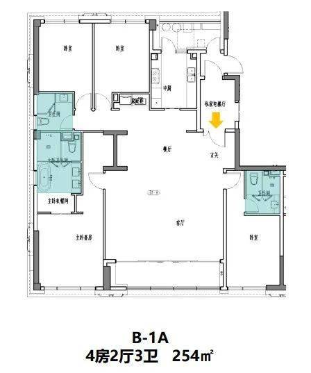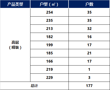 B地块为精装高层,主力户型为建面约166-254㎡3-4房,共177套;