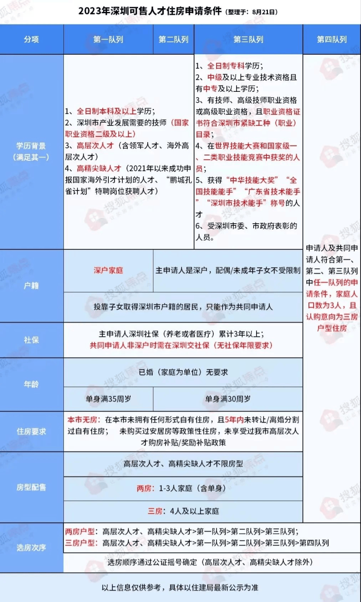 2023年深圳可售型人才房政策在经过两次调整,买入政策宽松不少,其中两房共分为三个队列,三房共分为四个队列,按摇号后队列的先后顺序买房。