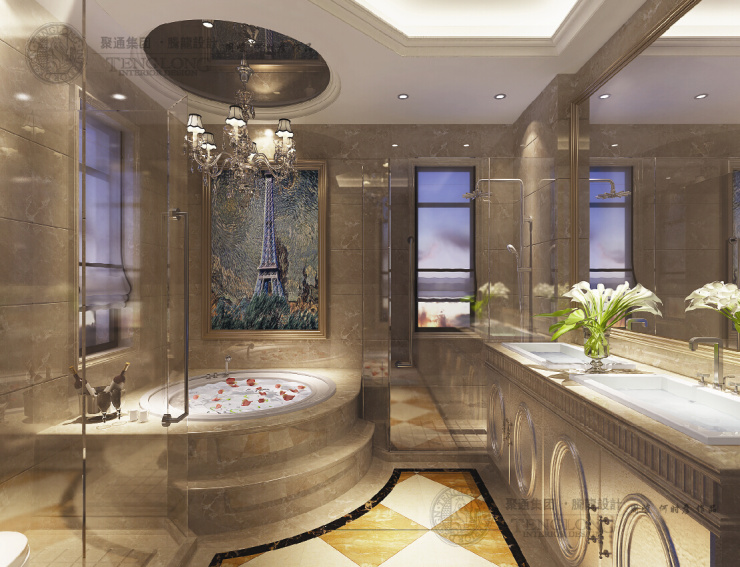 设计说明:业主是私营企业主,50岁左右,一家四口;案例为纯设案例,客户官网点名后从贵州飞到上海,签订该设计合同,设计风格上定位为欧式风格,偏暖的色调,大面积的运用拼花大理石和白色护墙板结合,简约欧式风格沿袭古典欧式风格的主元素,融入了现代的生活元素。欧式的居室有的不只是豪华大气,更多的是惬意和浪漫。通过优质的典线,精益求精的细节处理,带给家人数不尽的舒服触感。