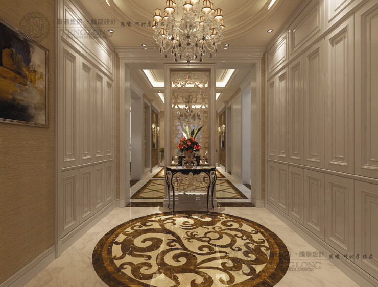 小区:金地格林白金院邸 户型:双拼别墅 面积:约400平 设计风格:欧式 设计师:周峻 设计施工单位:上海腾龙别墅设计 设计说明:业主是私营企业主,50岁左右,一家四口;案例为纯设案例,客户官网点名后从贵州飞到上海,签订该设计合同,设计风格上定位为欧式风格,偏暖的色调,大面积的运用拼花大理石和白