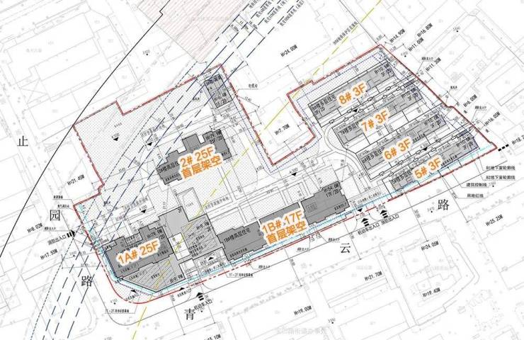 此次公示的为146-07地块设计方案,拟建3栋15-25F高层住宅,首层均架空,其中1#A楼25F、2# 15F、3#楼25F。
