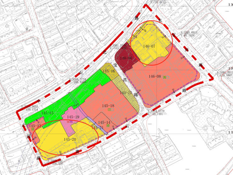 其中,145-20地块在止园路、青云路交汇处;146-07地块在中山北路和东宝兴路交汇处。