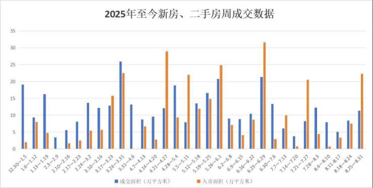 根据上海中原地产数据,上周(8月25日至8月31日)新建商品住宅成交面积达到11.34万平方米,环比大幅增长35.25%;成交套数达3564套,环比上涨57.3%,创下近期新高。
