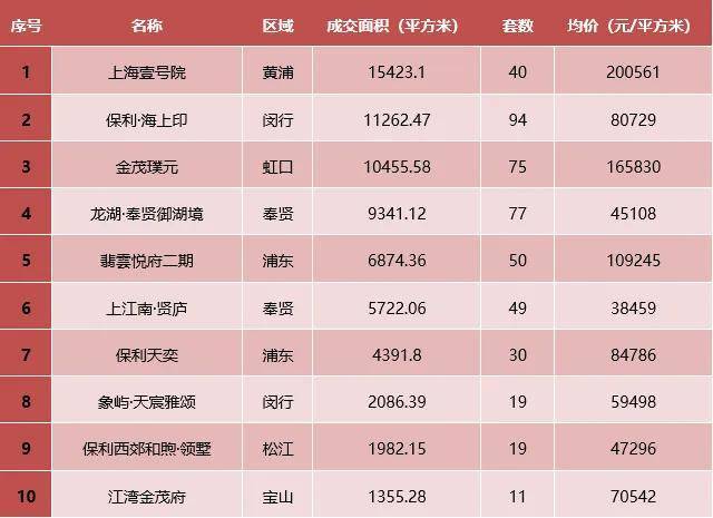 成交前十项目中,单价10万元以上的高端楼盘有3个上榜。虹口区内环内的金茂璞元项目以16.58万元/平方米的均价、75套的网签量位居榜首。