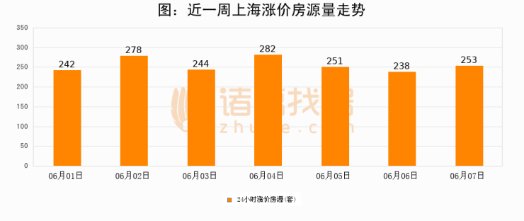 根据诸葛找房数据显示,上海24小时涨价房源量为253套,较06月06日增加15套,环比上涨6.3%。与此同时,涨价房源占比小幅扩大,业主信心有所提升。