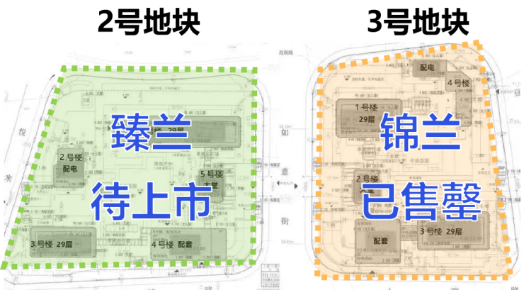 项目由2个地块组成,两个地块将各自分别建造2栋29层的公寓,此外还有少量商用房和配套公建房等,总建筑面积约9.87万㎡,计容面积约6.34万㎡。其中3号地块-锦兰 已于今年1月首开入市,111套房源,442组认购,280组入围,入围分97.2分!