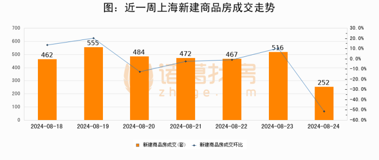 【上海成交日报】08月24日新房成交252套;涨价房源115套