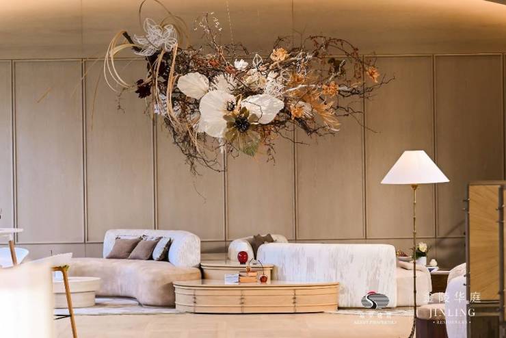 嘉里建设力邀著名室内设计师Chris Shao,在室内空间设计上,通过"结绳纪事"的精神,为金陵华庭塑造现代功能与传承文化符号的设计连结。著名美籍匠人艺术家Eric Morris以锻铜浮雕工艺雕琢花鸟图,将自然气息跃然于艺术屏风等物件上。李鼐含,来自内地的大漆艺术家,用蛋壳漆之工艺,取自金陵路独特的花砖图形,为里外展厅打造一款独一无二的家具。展厅入口,一部印刷精美的历史书卷,随着来宾的翻阅,在光影浮动中,仿佛穿越到了百年前的金陵路。展厅中心的四方庭院,取自金陵路的老屋脊瓦铺陈的屋顶,站于此间,如同是一处心归宁静的一方天地。
